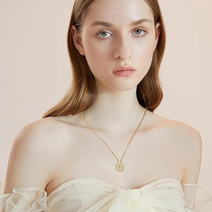 🍀【Dos maneras de llevarlo】Este collar contiene imanes que te permiten ajustar la forma de llevarlo. Hay dos maneras de llevar un collar de trébol de cuatro hojas. 1: Una vez armado, tiene la forma de un trébol de cuatro hojas. 2: Una vez desplegado, tiene la forma de cuatro pequeños corazones. Puedes usar este collar de la suerte según diferentes ocasiones o tus preferencias.